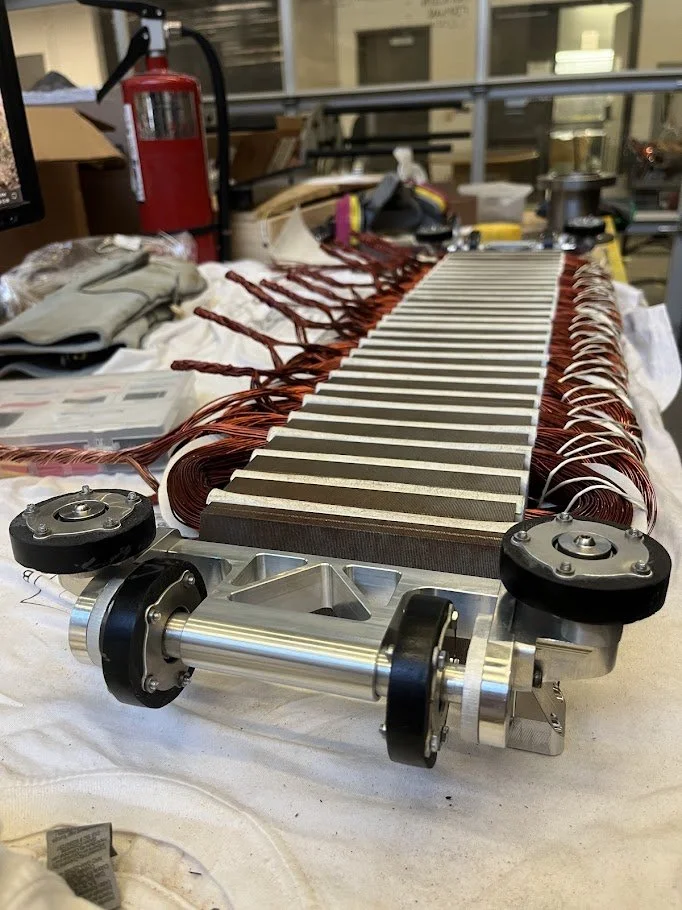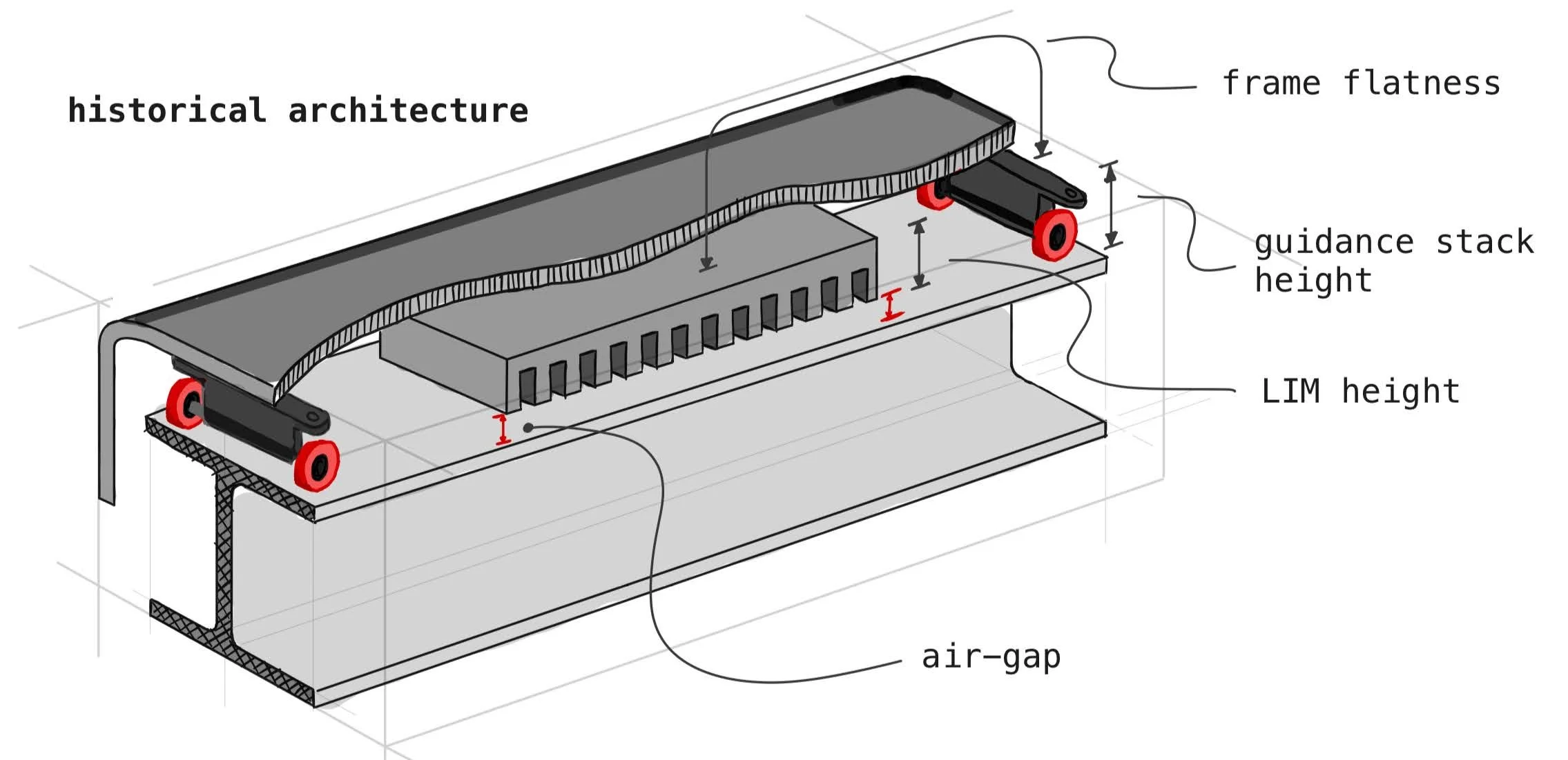 In this case, decreasing the airgap by even a fraction of a milimeter adds significant start-up thrust to the system allowing the pod to accelerate faster and hit a higher top speed.
