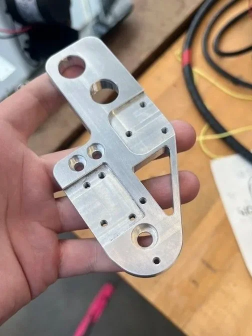 Parts were designed to be easily machined by manual mill/lathe and a 3 axis CNC. I hand machined everything apart from the side bracket and middle spacer (pictured) (3 axis CNC).